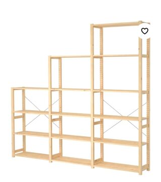 étagères modulables : tablettes, montants latéraux, croisillons et les taquets à placer entre les rails pour fixer les tablettes ATTENTION : elles servaient au rangement dans ma