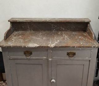 Téléphone ancien, décoratif, en onyx et marbre vert. 19-13-22 cm. A retirer sur place.