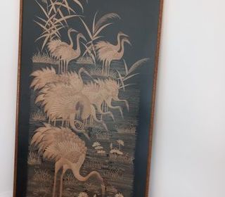 Tableau paysage, huile sur panneau, nature, montagne, biches, cerfs dimension: Cadre, 107 / 64 Tableau, 92 /49 A retirer sur place.