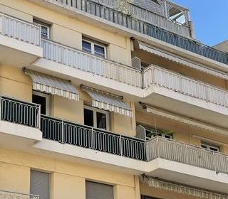 Particulier, vends à Nice Riquier, appartement T2 de 52 m2, dans immeuble résidentiel d'année 1968, au 6e et dernier étage avec ascenseur. Grande terrasse couverte de 19 m2. 1 sal