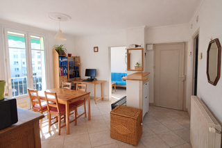 Appartement 2 pièces de 42 m2 loi carrez en Rez de jardin plein Sud, composé d'une entrée, d'un dressing, d'une salle de douche avec wc, d'une chambre et d'une cuisine ouverte sur