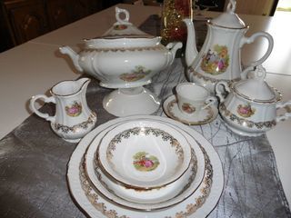 6 assiettes plates et 6 assiettes à dessert avec un motif feuillage. Bon état