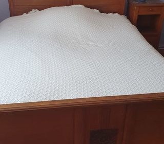 Vends lit au style rétro années 1930, au charme vintage. Ce lit est en bon état, accompagné d'un sommier de dimension classique, soit 140 cm par 190 cm. Il est actuellement visibl