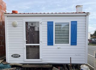 Mobilhome français marque IRM modèle super Astria Toit 2 pentes, bardage PVC, châssis galvanisé Intérieur en très bon état, cuisine aménagée , coin repas et rangement 1 Cham