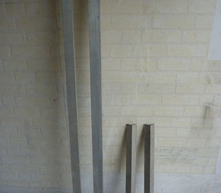 2 poteaux inox brillants longueur 2 m x 4 cm x 4 cm 2 chutes cornières inox mate longueur 70 cm x 5 cm x 5 cm a retirer sur place