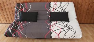 Banquette lit "clic clac" Double couchages. Grand espace de rangement dans le caisson.
