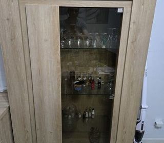 meuble de qualité en ORME meuble télévision hifi hauteur 105cm longueur 85 cm largeuR 50cm vitrine centrale verre fumé 45 cm de largeur et 63 cm de hauteur pour mettre box TV