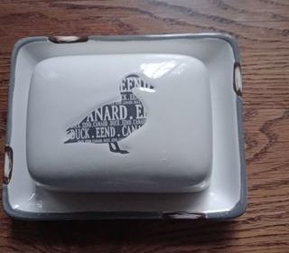 Joli plat à foie gras avec couvercle en faïence ou beurrier de la marque Iline . état impeccable . Remise en main propre à Fleurance ou envoi à vos frais .