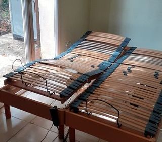 Clic clac 140X190 tres solide tout en fer forgé sauf le cottre matelas polyetane très terme protège par une housse de matelas acheter avec. Plus moi protéger par un drap housse.