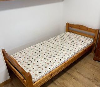 Lit de style DIRECTOIRE en excellent état ! En bois de chêne sculpté, sommier, dessus de lit, garnitures de tête et pied de lit de même origine. Matelas récent, avec garnissage d'