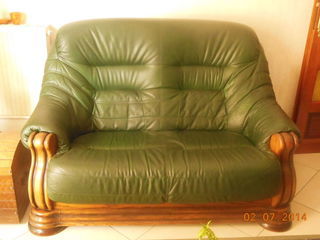 vend cause déménagement un canapé cuir 3 places - bon état - couleur marron clair - largeur 1.75m - profondeur 0.90 - deux fauteuils en bon état largeur 0.80 de la même couleur