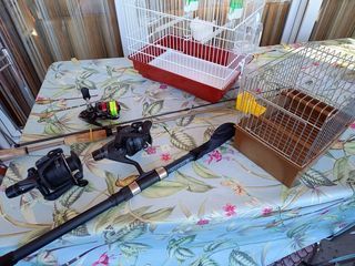 vent cage oiseau neuve +cage de transport très bon état+ 2 canes à pêche avec moulinets+ 2 moulinets en très bon état