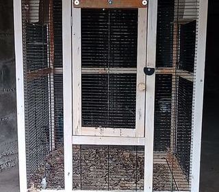 Grande cage , idéal pour les petits oiseaux à becs droits . Bon état général .