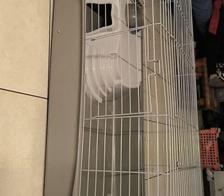 Bonjour je vend une cage pour cochon dinde de 120cm avec un petit trou couvert du scotch dans un coin