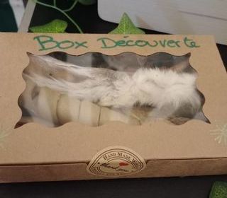Box découverte mastication spécial chien. Pour chien de toute taille. A l'intérieur vous trouverez de la mastication longue et courte. Du boeuf, du poulet, canard... Il y en a p