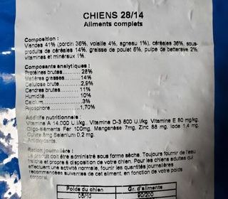 vends 2 sacs d' aliment complet 28/14 pour chien