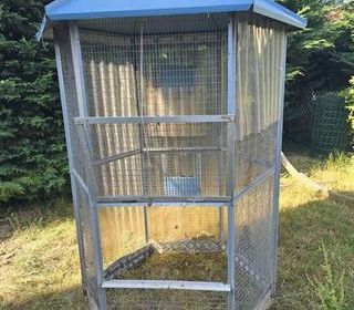 Grande volière exterieure en acier galvanisé de la Ferme de Beaumont. Dimensions: 2mx2mx1m