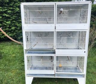 Batterie d'élevage 4 étages. Marque Terenziani, très bon matériel. Possibilité d'avoir 8 compartiments ou 4 plus grands. Convient aux becs crochus et exotiques. Portes en fa