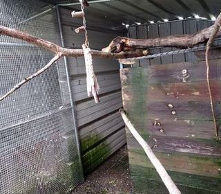 Grande volière 2m de haut 4m de large et 4 m de long actuellement divisé en deux mais peut faire une grande volière. Tôles dessus derrière et une partie sur chaque côté gros grilla