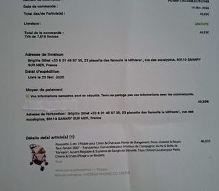 Poussette reçu ce matin, neuve je la vend car je vien de perdre ma petite York qui était malade et je lui avais commander cela