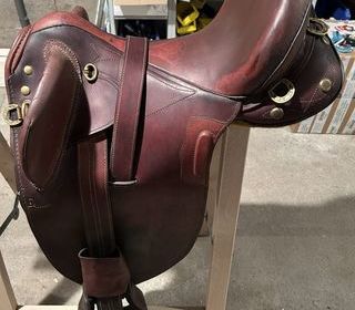 Je vends une selle de cheval australienne en cuir bordeaux avec sangle , étriers et rivières Très peu servie mais est restée longtemps sans être utilisée État satisfaisant Idéa