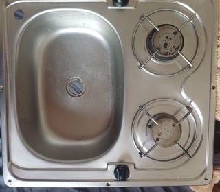 Vends combiné evier rechaud inox, marque Sutter, 490 par 460. Très bon état, acheté neuf. Cause changement vehicule. Prix neuf 220 euros.