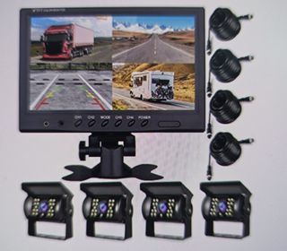 Podofo Camera de Recul 9 Pouces Moniteur avec Vue Avant de 4 Moniteurs Séparés, 4 x Camera de Filaire 18 Vision Nocturne IR, avec Câbles 2 x 10 m et 2 x 20 m pour Camping Car/Camio