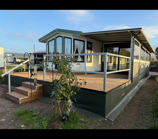 Terrasse bois sur mesure Auvent pour votre mobile home sur mesure simple ou 4 saisons. Bavette pour le tour de votre terrasse + le mobile home pour que cela soit harmonieux et avo