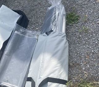 Camproom de5,50 deux panneaux latéraux, une façade, un protège vent adapté sur le Camping Car, neuf jamais servi monter une seule fois pour voir