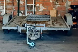 Remorque plateau double essieux pour véhicule ou autres. Longueur plateau 4m55, largeur 2m05. Longueur plateau HT 6m09, largeur HT 2m47. Pneus OVATION 175R13C VO2. État satisfaisa