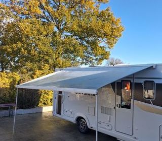 Vends store banne de paroi camping car marque : Thule série 4900 longueur : 4m50 profondeur : 2m50 couleur de toile : gris mystic posé en 2019 toile en bon état pas de trous quelq