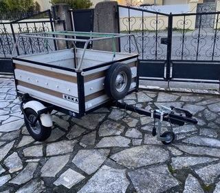 Remorque Erka 250kg de charge utile, bon état général. Flèche rallongée roue de secours, 2 roues complète neuve il y a un an et demi. ( pneus gente et roulement) Prix de vente 400