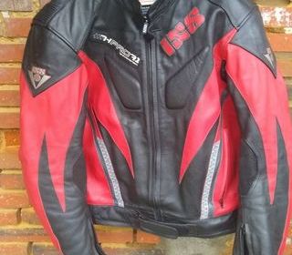 blouson moto cuir IXS rouge / noir taille L TBE ( IXS au dos )