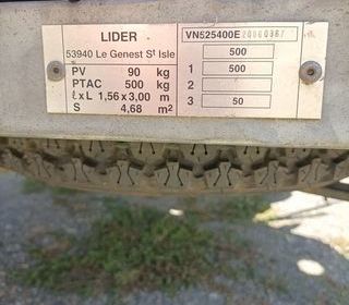 remorque LIDER porte moto un rail, 500kg , L 300cm X l 156cm . Plateau: L 225cm X l116cm. pneus neuf, roue de secoure, roue jockey neuf, feux a led, câblage neuf,