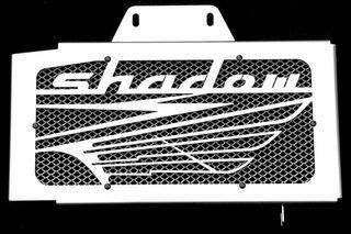 Plaque Cache radiateur inox poli design "Wing"+ grillage anti gravillon coloris au choix (alu, noir, rouge, bleu) pour Honda VT125 Shadow tous millésimes . Pièce 100% neuve très b