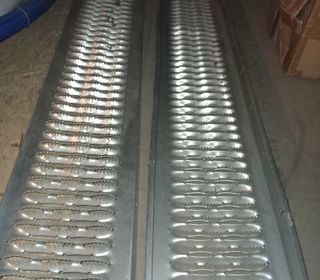 2 rampes d'accès pour motos, quads, tondeuses sur remoque. rampes en acier galvanisé, 1m90x0,20m. Une à redresser légèrement.