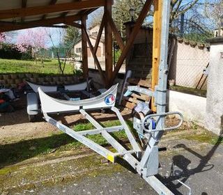 vends remorque à bateau pour Seascape 18, first 18 Beneteau très bon état entièrement révisée, aucun frais à prévoir, roulements et flasques de roues neuf, pneu neuf, roue jockey n