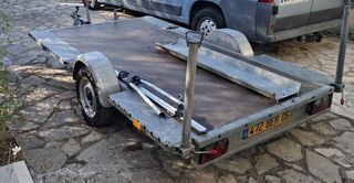 Remorque plateau - 1 essieu - PTAC 700 kgs - freinée - surface utile 1440 x 2940 cm - chassis en profilés soudés et galvanisés à chaud - roue de secours - 2 roues jokey - plancher