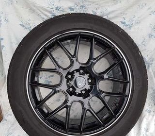 4 roues alu Racing pour VW tiguan 235/50 R18 V97 pneumatiques uniroyal rainsport3 avec écrous et cache moyeux. le tout en état impeccable avec moins de 1000km valeur 1600€ vendu 10