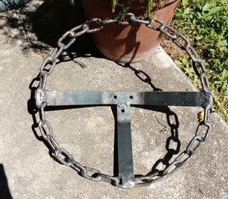 Modèle unique ! Fabrication maison. Les puristes pourront le polir et le chromer. Diamètre 34cm, trois perçage diamètre 8mm pour fixation. Etait monté sur une 4L de 1969. Envoi pos