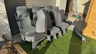 Bonjour, je vends un lot (séparable) de 6 sièges de minibus en très bon état, la première rangée de 3 sièges est équipée d'un accoudoir seulement du côté droit, et l'un des sièges