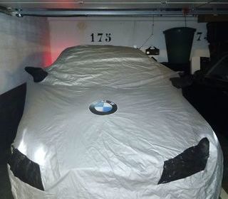 Bâche de protection avec le logo BMW protege de la pluie de la grêle er des UV avec une sécurité anti vol et des ouvertures contre l,humidité réglages avec des fermetures eclairs