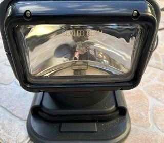 Vends projecteur 12V portable alimentation câble allume cigare. Fixation par vis ou magnétique. Idéal pour utilitaire, bateau, quad, etc.. Rotation et hauteur réglable par télécomm