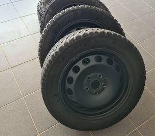 4 roues complètes: -jantes tôles, pneus hiver ,205/55 R16 91 H Michelin Alpine 6. Monté sur golf 7. Bon état. A venir chercher sur place.