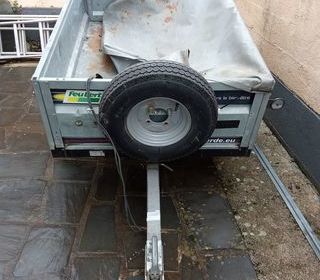 remorque d 'occasion erde feu vert 143 avec bâche, roue de secours + rampe pour 1 moto (trous déjà fait dans la remorque pour l'installer)