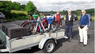 Urgent Remorque marque Saris ?longueur 190 cm ?Longueur totale avec bras 260 cm ?Largeur 110 cm ?Hauteur Avec armature 125 cm Bon état à part un feu cassé. La bâche est en très