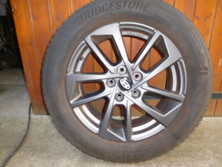 Suite à un changement de véhicule, je vends 4 Pneus Neige BRIDGESTONE montés sur jantes Alu HYUNDAI d'origine 215 / 65 / R17 103 H 5 Trous servis 2 Hivers