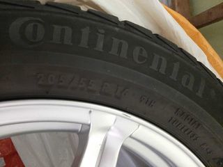 Pneus neige 205/55R16 91 Continental sur jantes alu diamètre 44 cm Entraxe 10.5 . Jantes 5 trous avec numéro KBA 46033 marque PLW.
