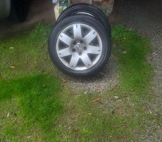 4 jantes avec pneus ok d'origine Saab Entraxe 5x110 Etat des jantes : peinture endommagé mais présente bien. Aucun choc ou voile 2 pneus neige 2 pneus été Modèle compatible en