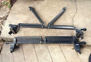 Marque Thule. 120cm. Fixations réglables en largeur sans outil, selon la voiture. Vendues avec les porte skis, démontables si vous voulez des barres simples. J'ai les clés des barr